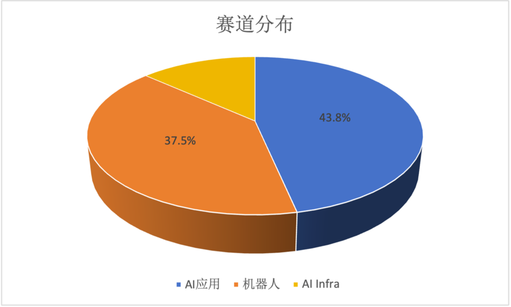 在我们的候选名单中,大部分是AI应用方向的创业者,占比为43.8%,其次是机器人行业创业者,占比为37.5%。