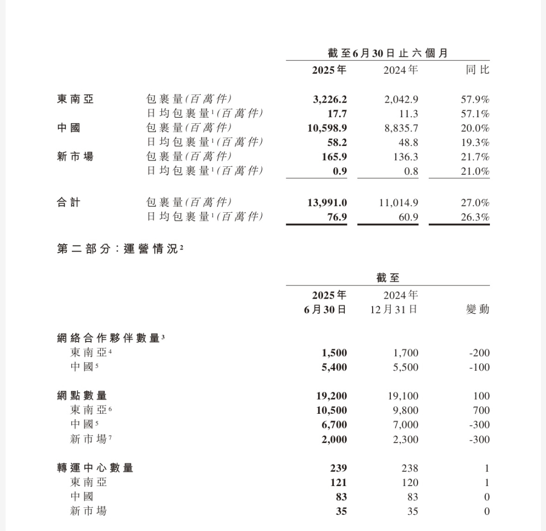 尤其是东南亚业务,区域包裹量大幅提升57.9%,市占率增至32.8%,连续六年保持第一。