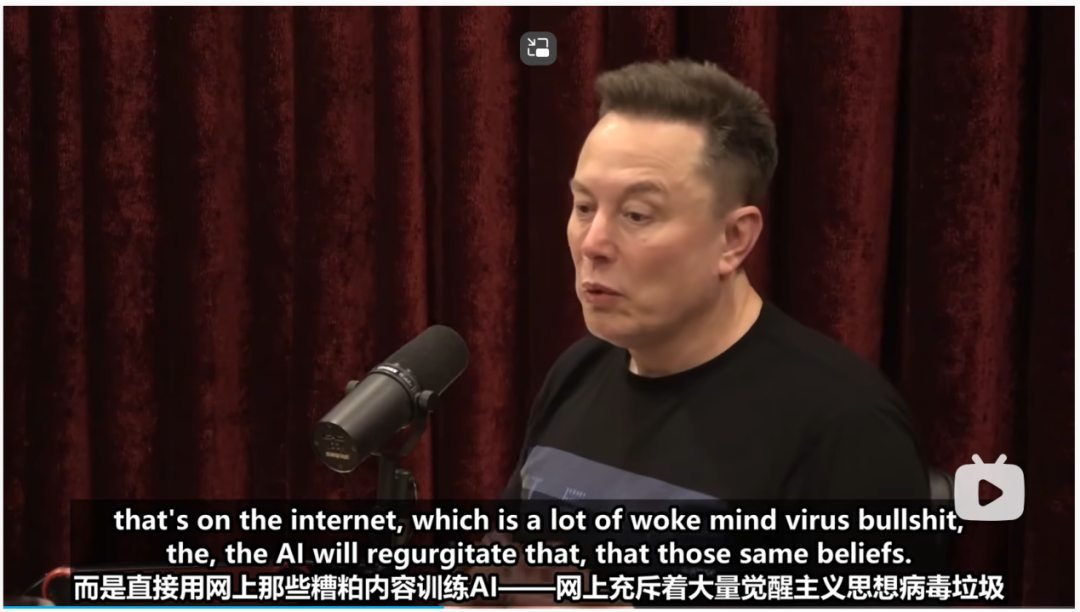 他把这种思维称作“觉醒思维病毒”,在后续的谈话中,他提到如果这种思维被注入到AI,那AI可能会因为追求极致的多元化,以至于认为消灭部分人类可能是一种选择。