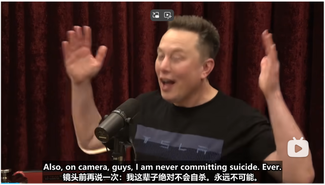 当然,马斯克赶紧抓住机会声明,他绝对不会自杀。他的意思是,如果有一天他“被自杀”了,那肯定是被谋杀的,这真的让观众看乐了。