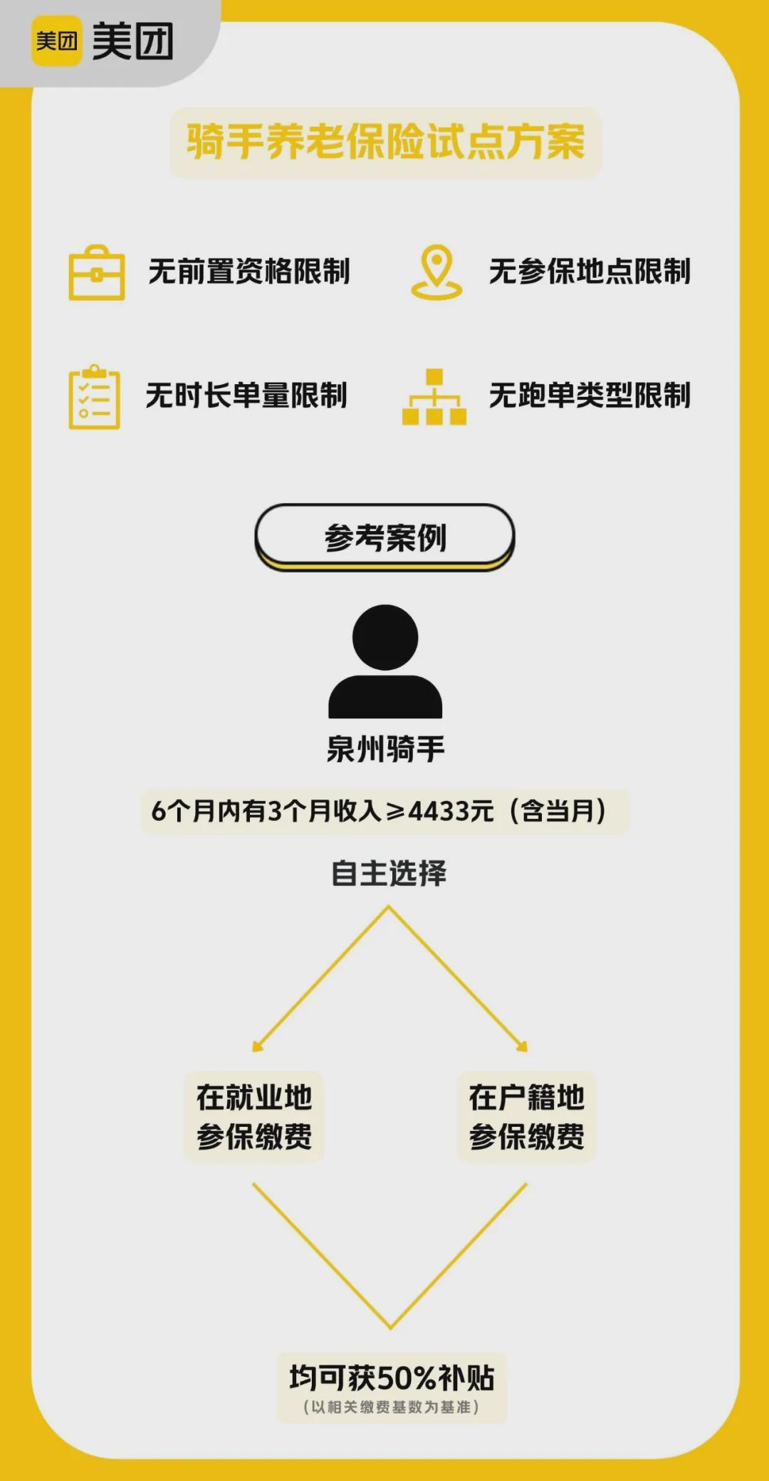 2025年10月27日,美团正式宣布养老保险补贴覆盖全国,向全部骑手开放。