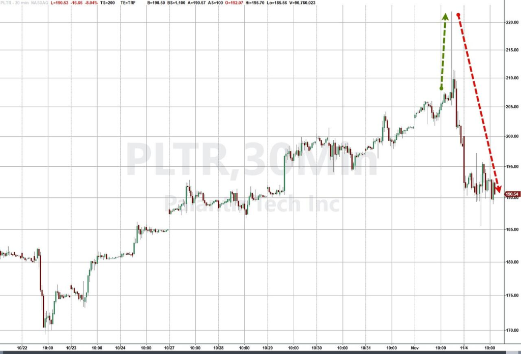 具体来看,两大事件直接引爆了对散户热门股的抛售。首先是Palantir的财报引发了对其增长前景的担忧。
