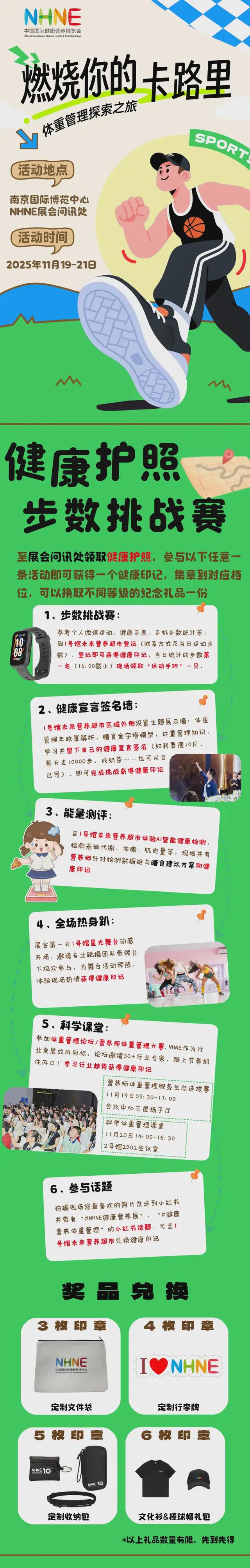响应“体重管理年”政策东风,未来发展趋势一片向好NHNE汇聚全球领先的体重管理创新产品,“健康护照”步数挑战赛、体重管理产品打卡路线活动等活动,在互动你验中抓住行业风口,同时30+款精美礼品、样品带回家!
