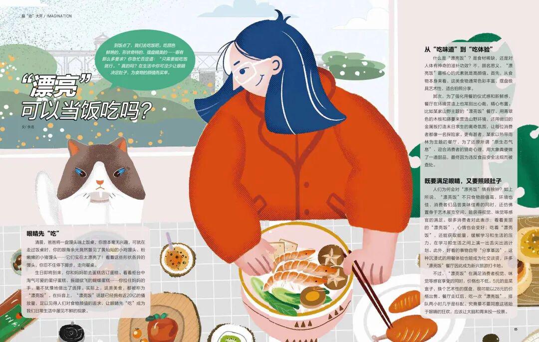 黄灿灿的小鸡馒头、振翅欲飞的蝴蝶蛋糕,为什么能让孩子主动放下零食?抖音“漂亮饭” 话题 20 亿播放量的背后,是 “从吃味道到吃体验” 的消费变化。杂志不仅介绍了山野主题餐厅用藤蔓、旧金属板营造氛围的巧思,也提醒孩子:5 元的韭菜盒子换个摆盘卖 28 元,排队两小时值不值?学会用 “大脑和胃” 投票,才是理性消费的开始。