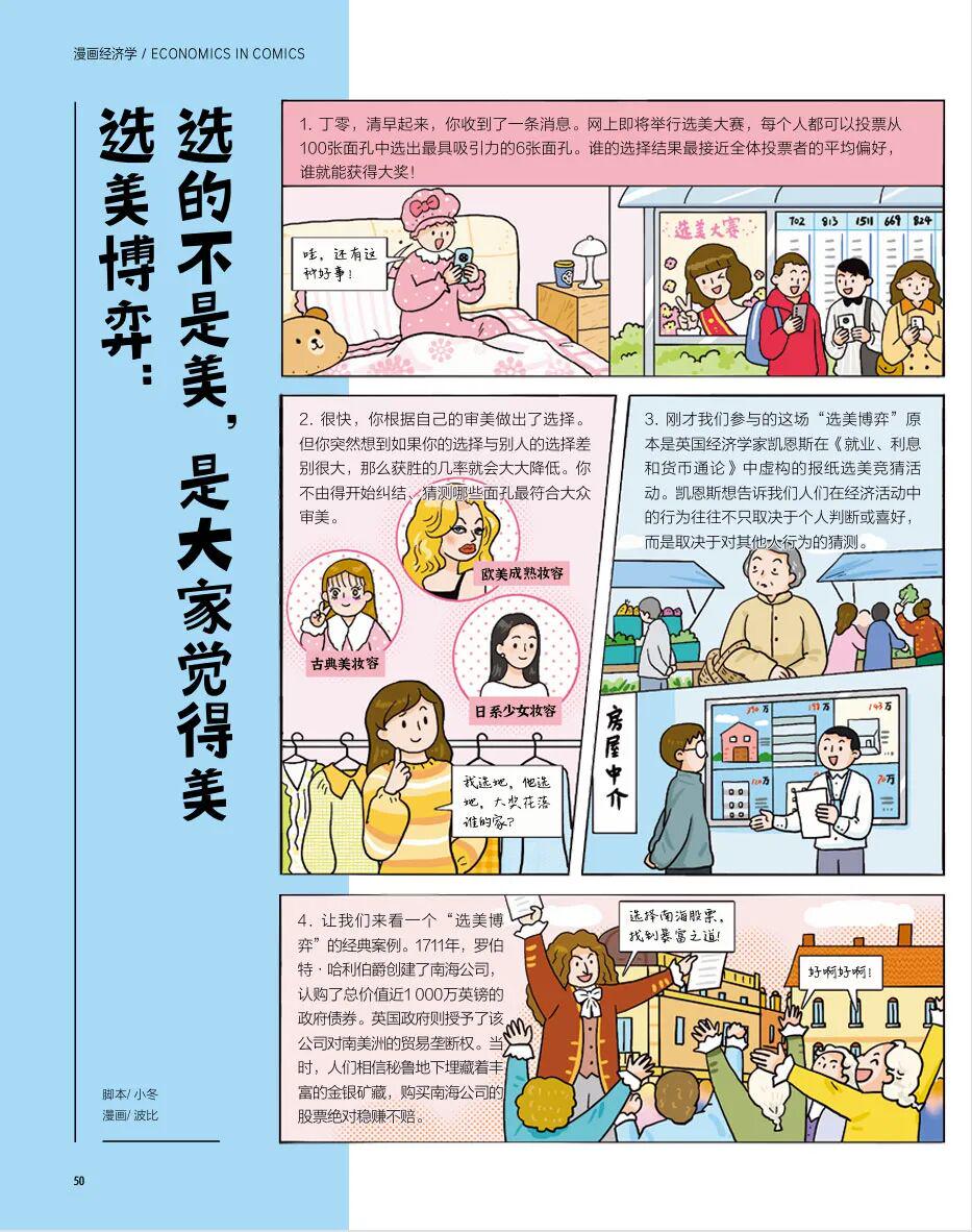 提到“经济学”,别担心孩子觉得枯燥!“漫画经济学”栏目用趣味剧情,讲透凯恩斯的 “选美博弈”:网上选美大赛,选对 “大家觉得美” 的面孔才能赢,而不是 “自己觉得美”—— 这就像人们买股票、选热门商品,往往会考虑 “别人怎么选”。还有 1711 年南海公司的经典案例,让孩子轻松理解 “群体心理如何影响经济行为”,经济学思维从小培养!