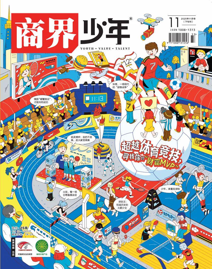 作为专为青少年打造的商业启蒙杂志,它从不讲枯燥的理论,而是用故事、案例、漫画和趣味实验,带孩子看懂生活里的商业逻辑,解锁“财富MVP”的成长密码。这一期,更是把 “体育” 与 “商业” 玩出了新花样,从村超狂欢到 AI 体育黑科技,从 “漂亮饭” 的经济学到选美博弈的智慧,每一页都藏着让孩子眼前一亮的知识点!