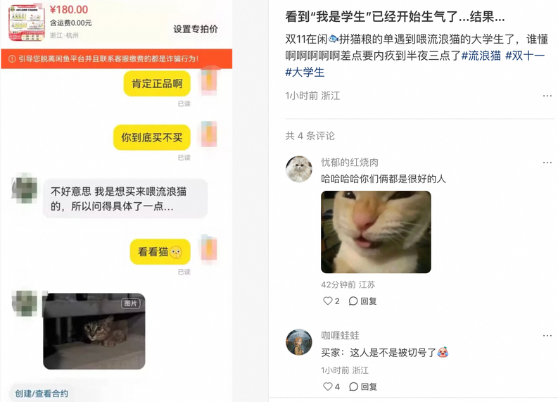 (看到“我是学生”已经代入生气了,没想到对方是花钱喂流浪猫的真大学生)