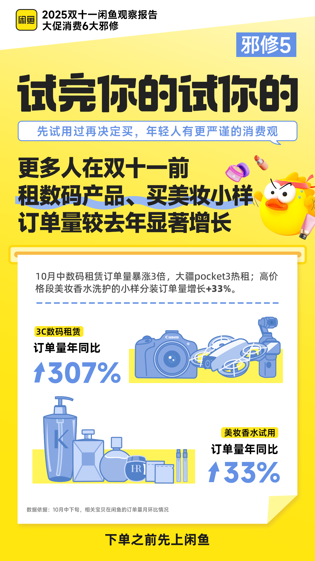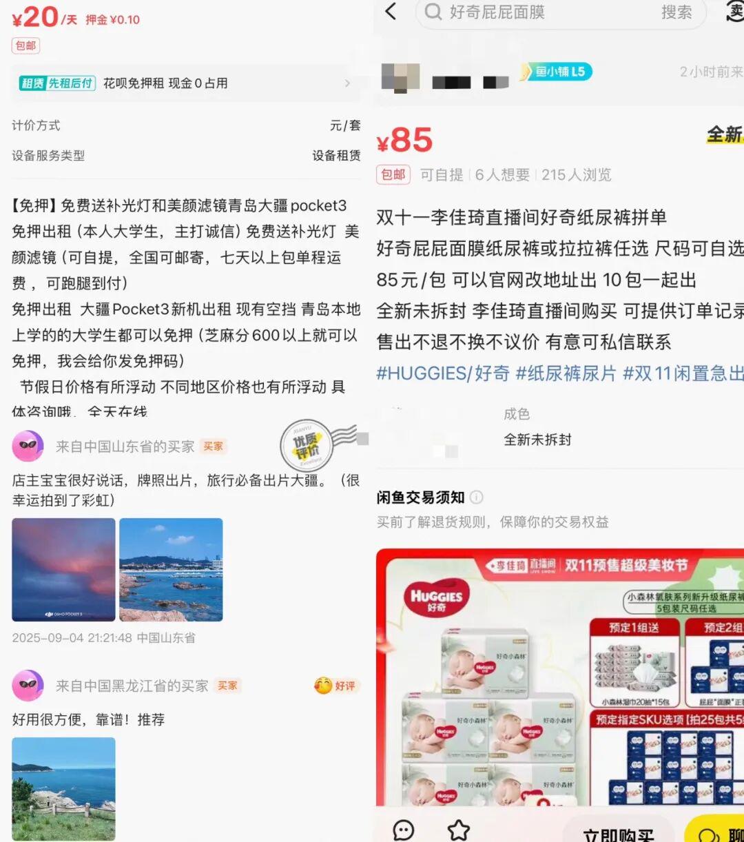 闲鱼无意中也成为了双十一的民间“试用中心”,用户通过短租或购买小样,极大地降低了决策失误的风险。