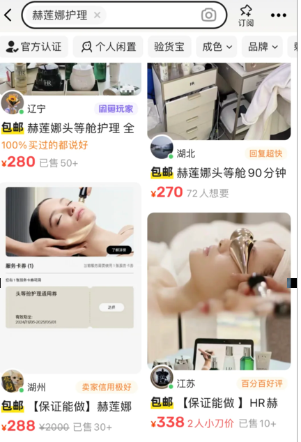 (VIP们用闲鱼出售用不完的高奢美容护理项目,双十一期间一两百就可以体验)