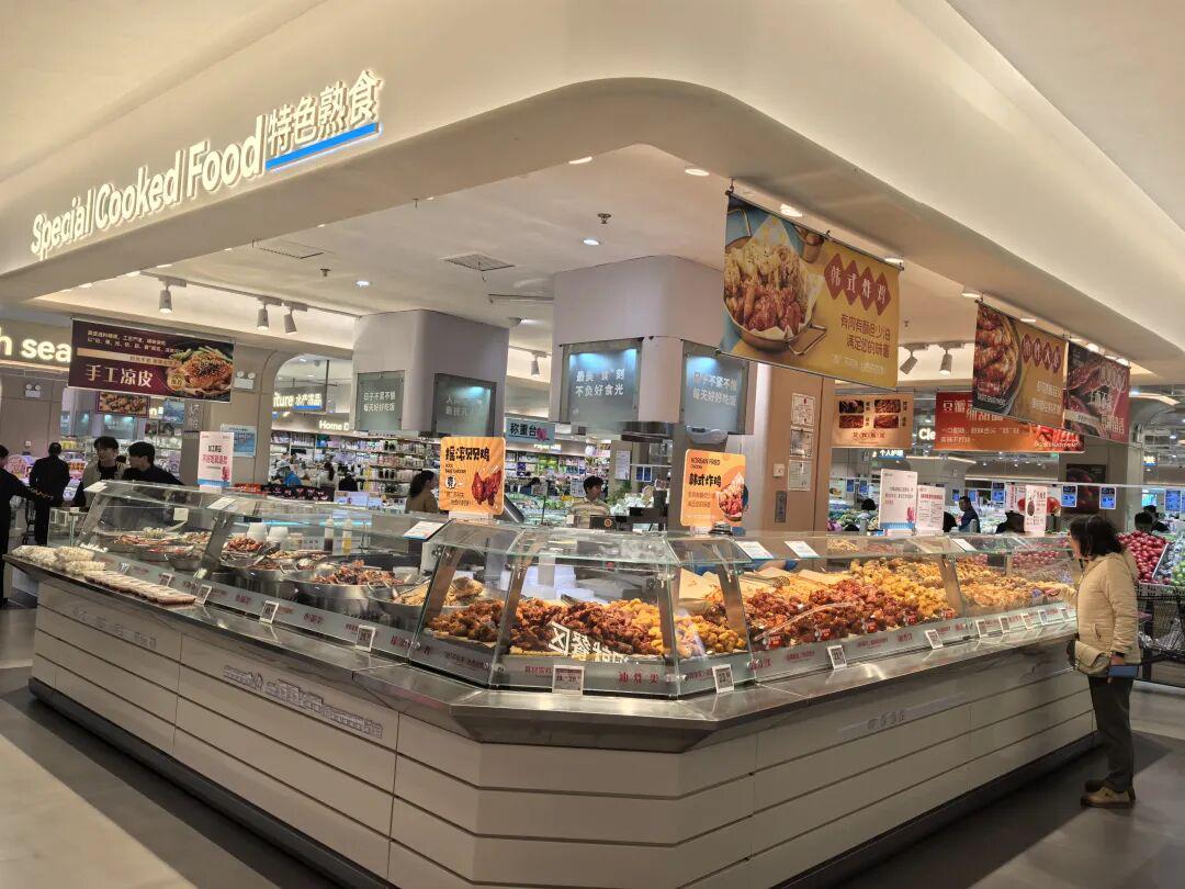在河南,华豫佰佳超市设置了大规模的熟食加工区。鲜蒸区内,现蒸的黄花鱼、大龙虾香味四溢;热卤区摆放着热气腾腾的八宝饭、小龙虾、卤肉。超市还专门辟出了休闲就餐区,方便顾客现场就餐。