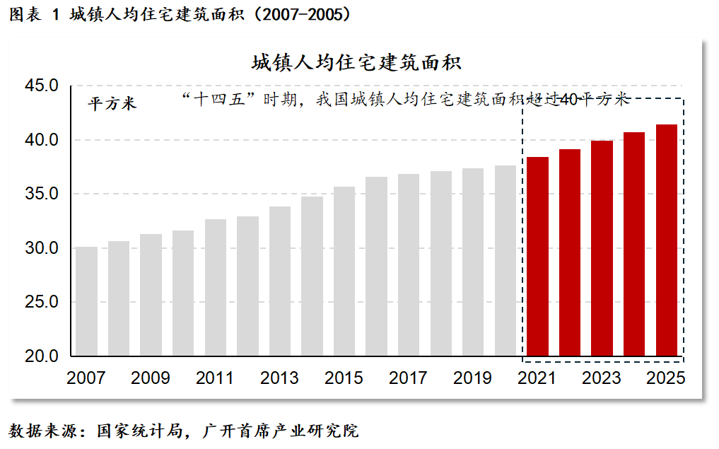 未来城镇化建设仍能催生一定规模的城镇人口住房需求。尽管近年来城镇化建设进程整体放缓,但并不等于增量需求的消失。理论上长周期住房需求=全国总人口*城镇化率增量*人均住宅面积增量。根据联合国预测,到2030年左右我国城镇化率将达到70%左右,这意味着“十五五”时期,我国城镇化率仍有大约2~2.5个百分点的增长空间。随着改善性需求提升,未来我国人均住宅面积将进一步增大。历史数据显示,人均住宅面积增量与城镇化率增量关联度极高。将两个变量做简单线性回归分析,数据选取1998年~2024年,发现其相关性超过97%,其他统计指标均表明两者关系密切,方程斜率为0.63,即自1998年房改后所经历的26年时间内,我国城镇化率每增长1个百分点,新增人均住宅面积约0.63平方米。基于上述分析,预计到2030年,我国城镇人口将达到9.83亿人,城镇人均住宅建筑面积将升至44.6平方米,人均住房面积持续上升。
