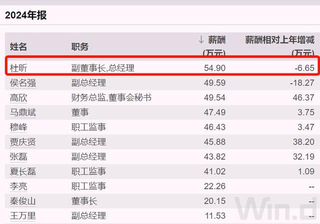 根据年报披露,2024年,杜昕税前薪酬约55万元,比2023年减少6.7万元,在高层中薪酬最多;原董事长秦俊山任职较短,薪酬为20万元。