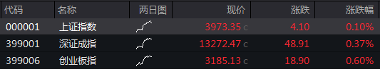 沪指高开0.10%,深成指高开0.37%,创业板指高开0.60%。