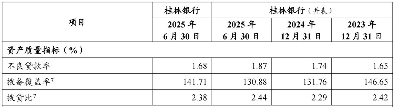 从不良贷款率来看,2023年-2024年,桂林银行的不良贷款率分别为1.65%、1.74%。2025年上半年,桂林银行的不良贷款率为1.87%,较2024年末上升了0.13%。