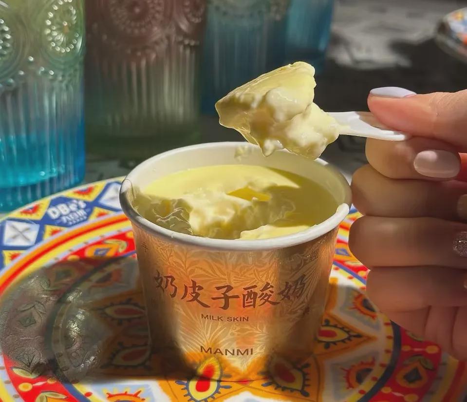 茉酸奶推出醇金奶皮子酸奶,满米酸奶布局奶皮子酸奶专门店,开吉茶馆推浓浓奶皮子,楼下酸奶有泰式咸法酪奶皮子冰奶,瑞幸卖奶皮子拿铁,在行业都曾引发打卡潮流。
