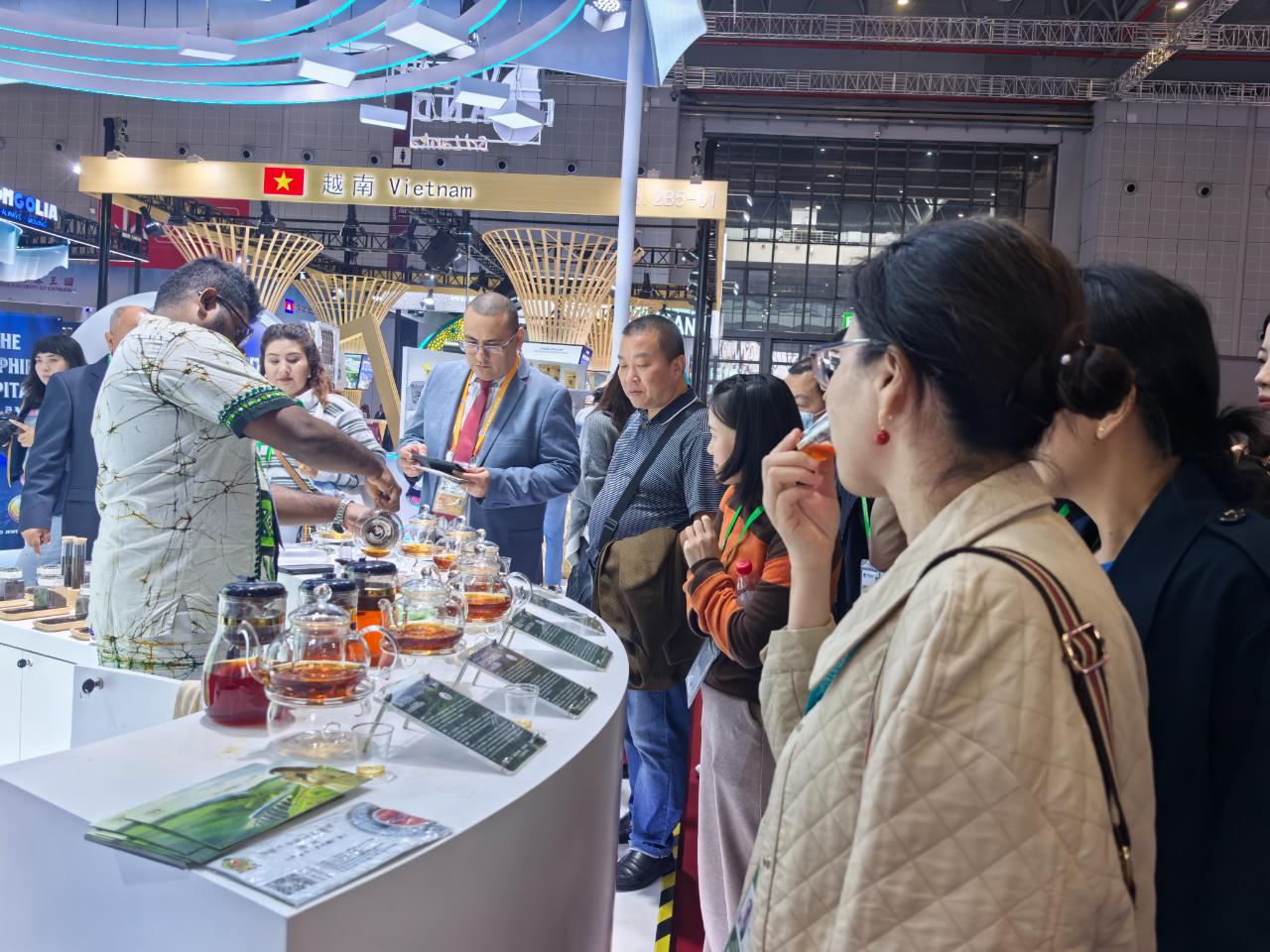 观众正在了解斯里兰卡的茶叶。(中国商报记者 于佳鑫/摄)