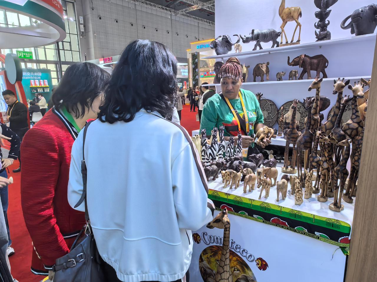 观众欣赏非洲特色工艺品。(中国商报记者 于佳鑫/摄)