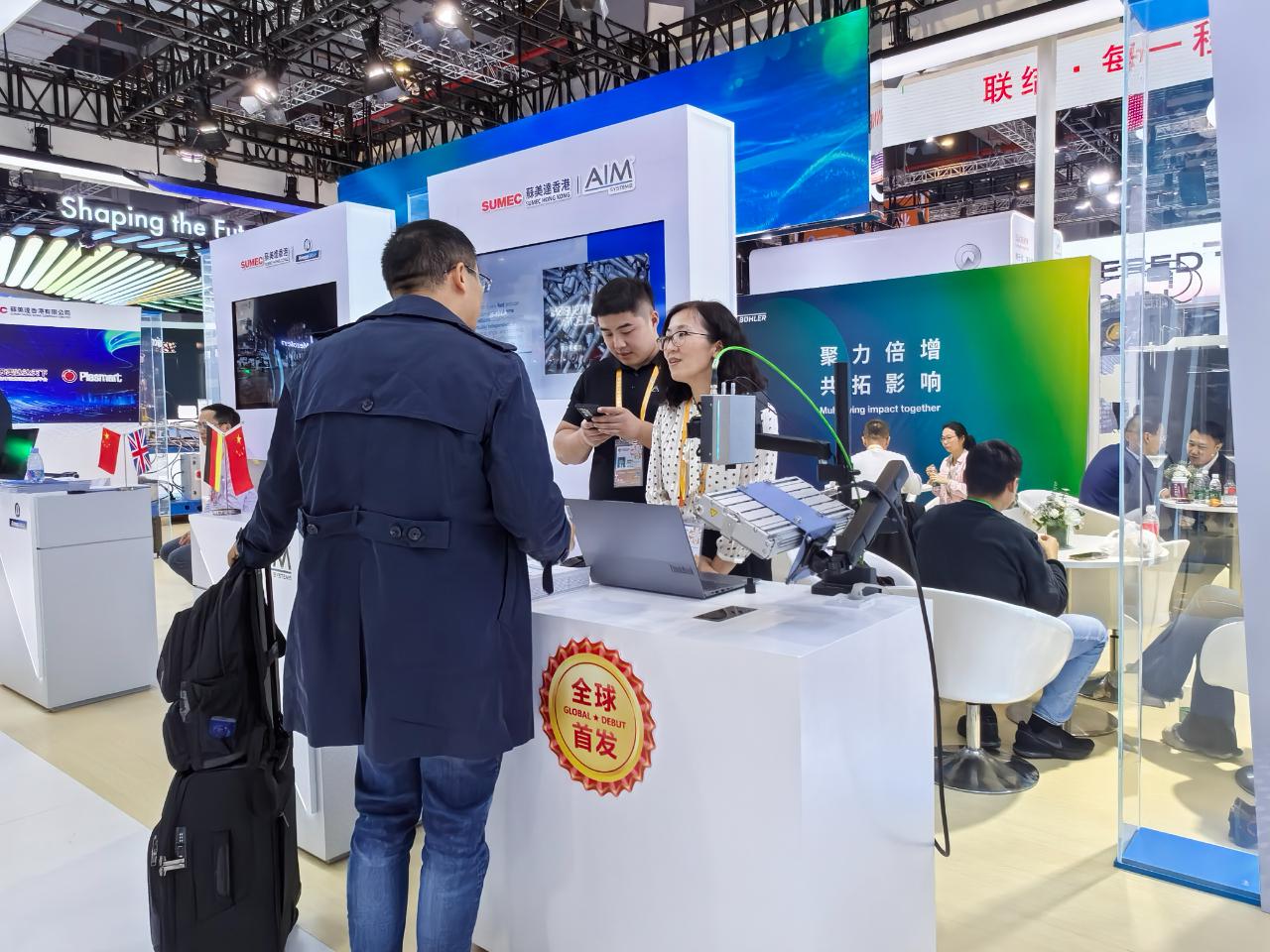 苏美达带来了全球首发“无损无接触式涂层测量仪”。(中国商报记者 于佳鑫/摄)