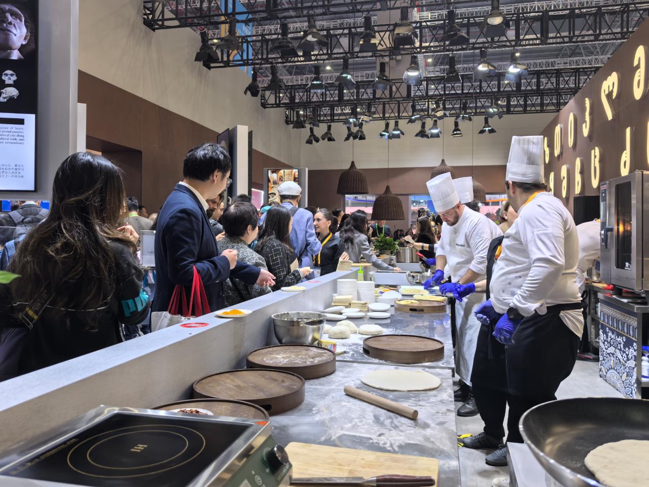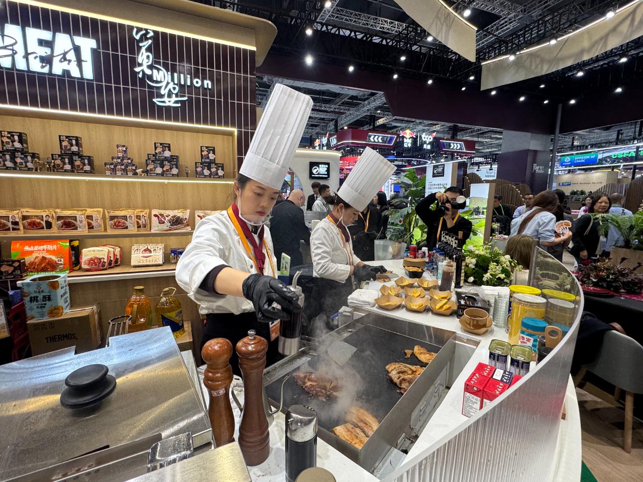 农食产品展区,现场大厨“秀”起来。(中国商报记者 周子荑/摄)
