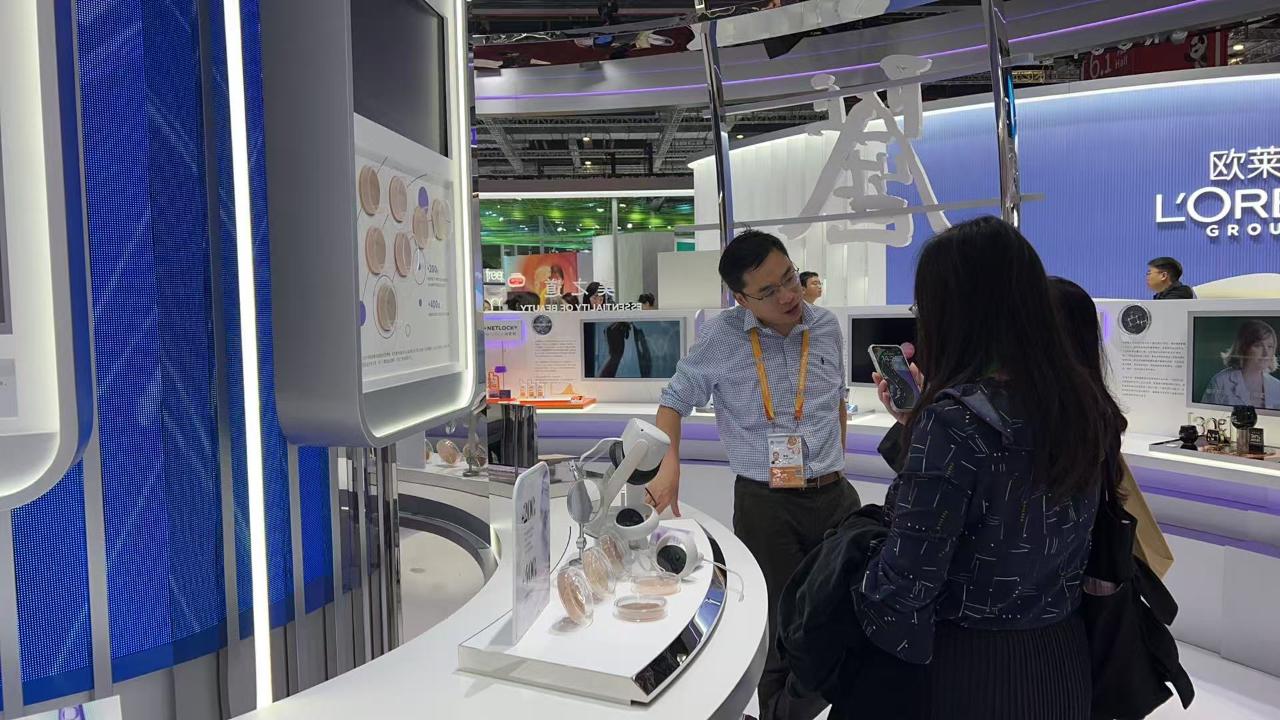 美妆企业展台多了许多科技产品。(中国商报记者 马嘉/摄)