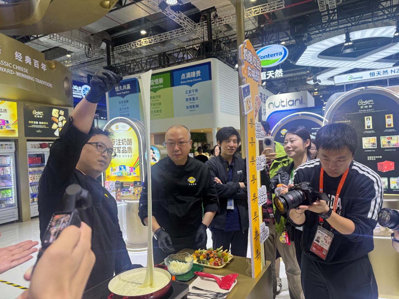 工作人员正在展示国产奶酪。(中国商报记者 周子荑/摄)