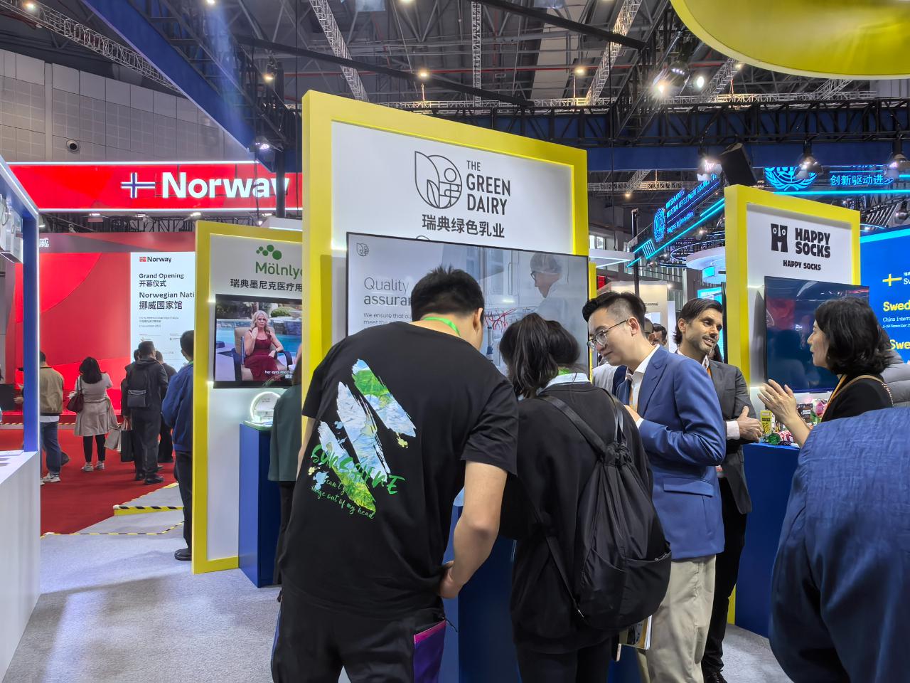 国家展瑞典展台,观众在了解瑞典的绿色乳业。(中国商报记者 于佳鑫/摄)