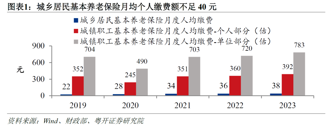 《“十五五”规划建议》提出“逐步提高城乡居民基础养老金”,这一要求指向当前城乡居民养老保险面临的待遇偏低问题,提高城乡居民养老金水平是完善基本养老保险体系、提高社会保障水平、提振消费的重要举措。我国的基本养老保险包括城镇职工养老保险和城乡居民养老保险,城镇职工养老保险主要依靠用人单位和职工缴费运行,城乡居民养老保险面向农村居民、城镇非正规就业人员等中低收入群体,主要依赖财政补贴运行。此前我们在前期报告《》中系统梳理过两者的差异和核心症结。