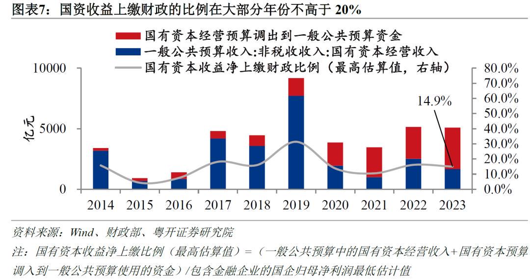 如果我国适度上调国资收益上缴财政比例至40%左右,则国资收益上缴财政的净规模将至少达到约1.4万亿,较2023年水平增加超过8000亿,能够覆盖全民最低养老金的增量资金需求。