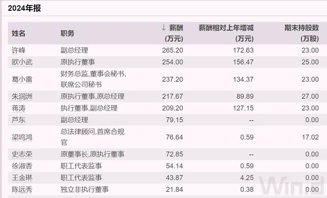 2024年,副总许峰薪酬最高,税前为265万元;多名高管薪酬超过200万元,他们还持有十几、二十几万股票,价值也不菲。