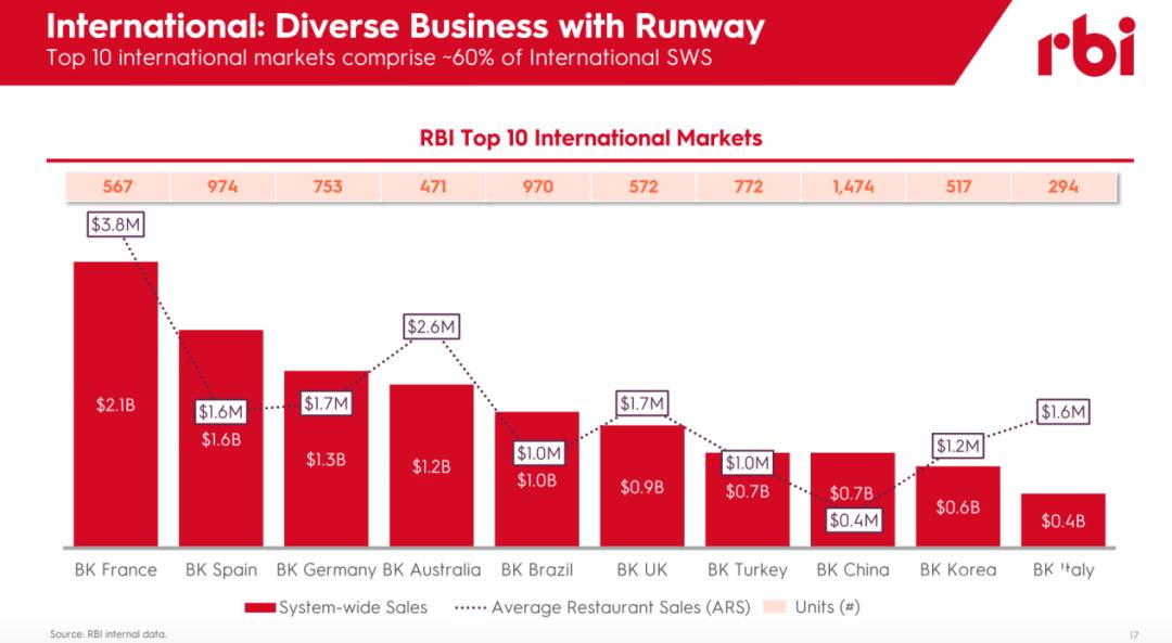 数据印证了这一点:RBI年报显示,汉堡王中国单店平均年销售额仅约40万美元,而法国是380万美元,韩国也有120万美元。