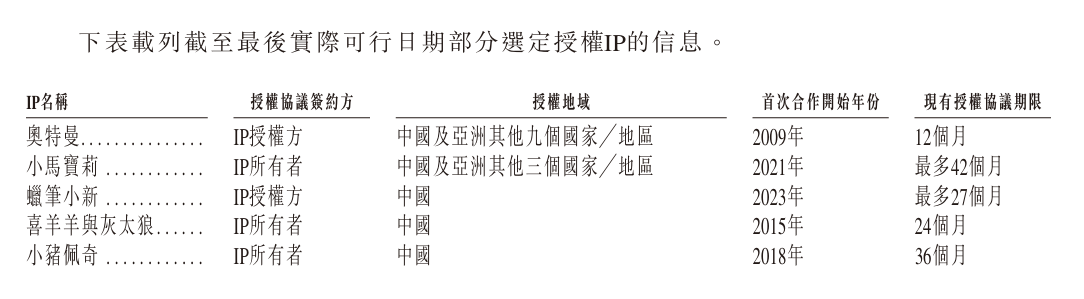 据悉,金添动漫与奥特曼的IP授权方于2009年首次开始合作。截至最后实际可行日期,奥特曼IP的授权协议期限仅剩12个月。