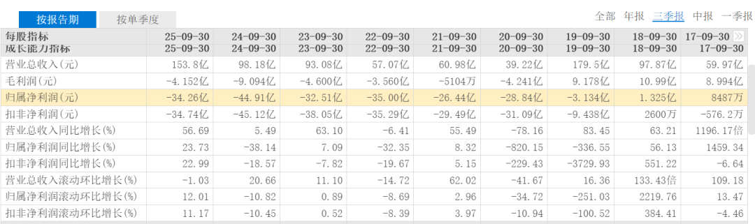 图:北汽蓝谷历年三季报数据(来源|东方财富)