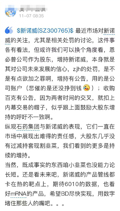 “ 通过大股东恩必普账户增持新诺威股份,被认定为内幕交易,处罚公告同时要求处理掉增持的股份。新诺威是这两年创新药行业明星标的,这一处罚也引发市场担忧和股民疑惑。”