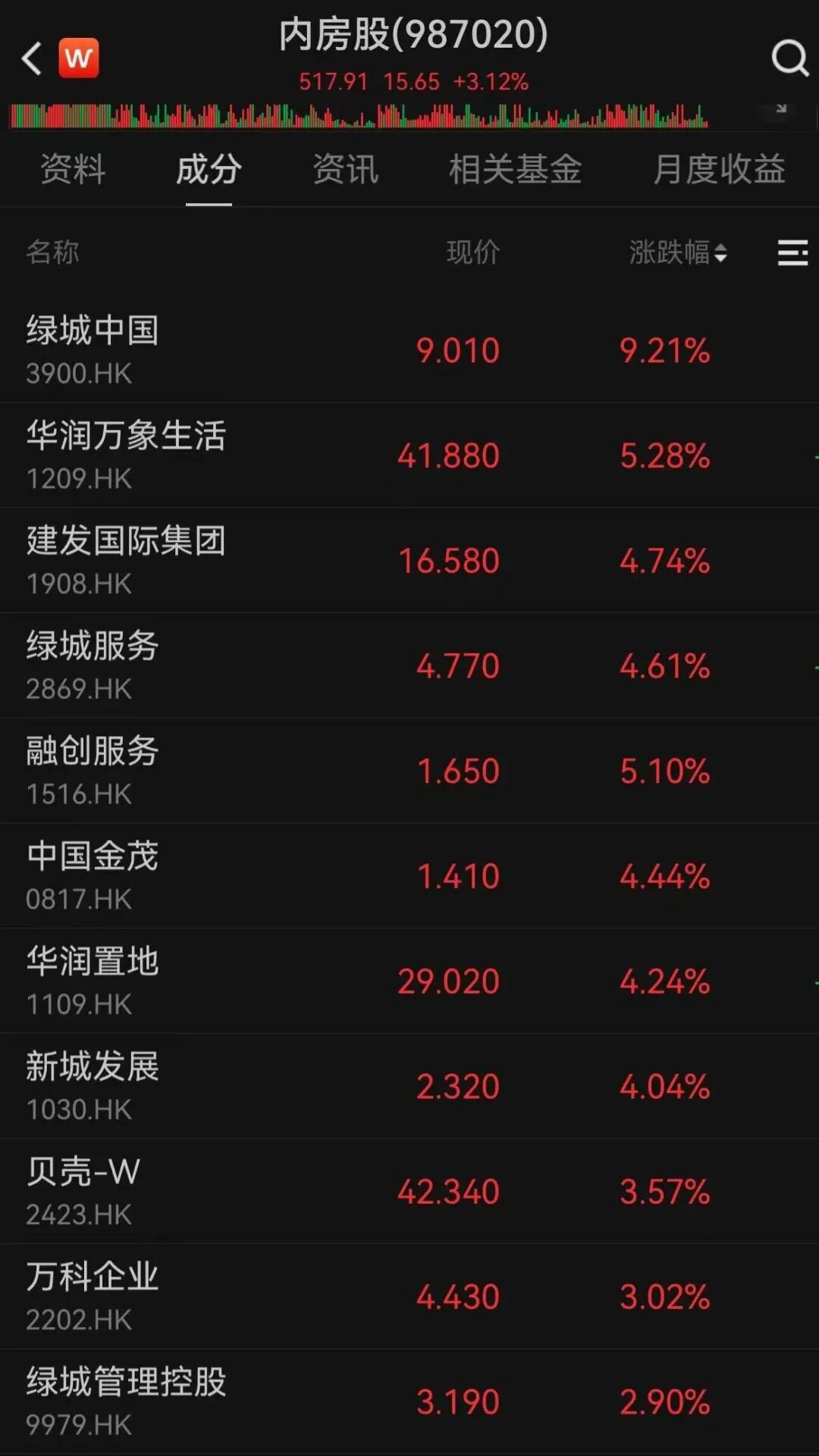 11月10日午后,港股内房股走高,截至发稿,绿城中国涨超9%,富力地产涨超7%,华润万象生活、融创服务涨超5%,华润置地、新城发展等个股跟涨。