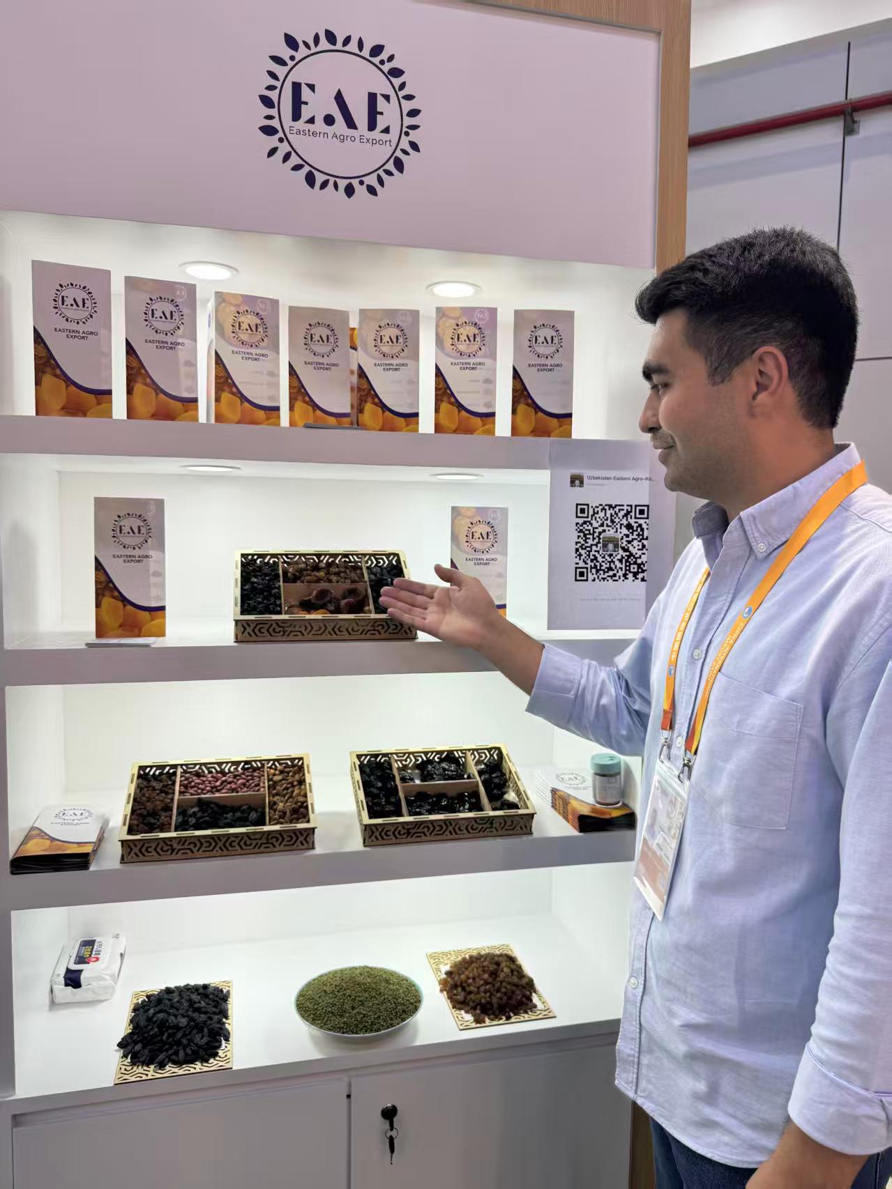 博季罗夫的东方农业出口公司(Eastern Agro Export,EAE)是乌兹别克斯坦最大的干果、坚果及豆类生产商和出口商之一,今年首次参加进博会,开幕第三天便已结识新客户、拿下新订单。