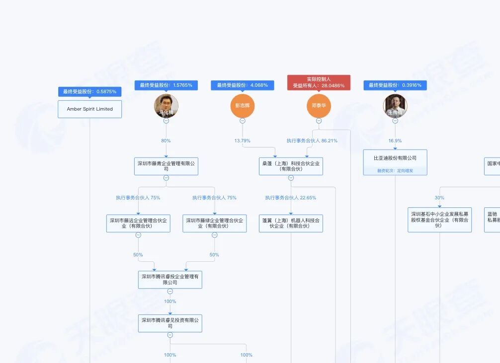 回到智元创新,记者注意到,在受益股东方面,除了“国家队”以外,也有王传福和马化腾的身影,最终受益股份分别约0.39%、1.58%。
