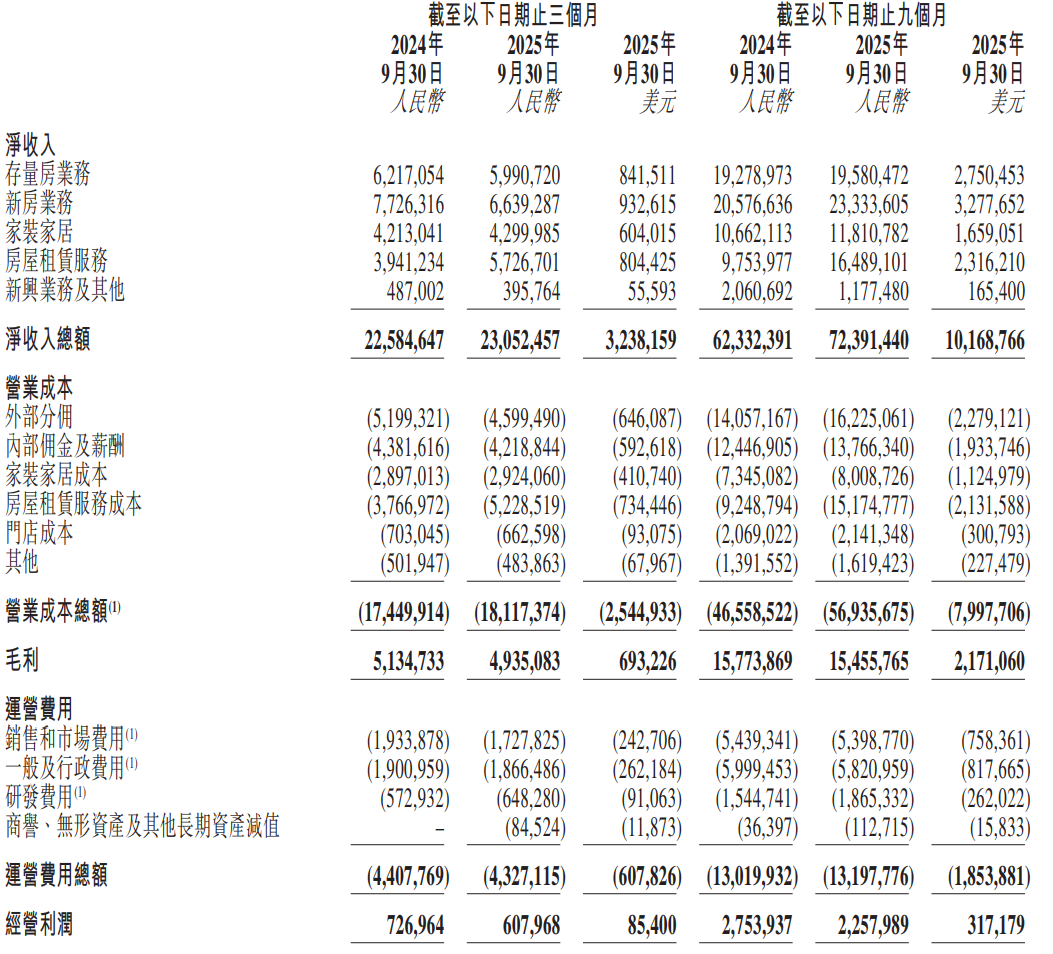 2025年第三季度,贝壳交出了一份充满矛盾信号的成绩单。