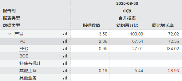 相关数据显示,2024年碳酸亚乙烯酯、氟代碳酸乙烯酯营收占比分别达到68.03%、22.08%,2025年上半年两项产品合计营收占比亦达到94.55%。