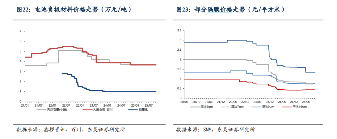 比如负极材料、隔膜,近期市场价格便保持相对稳定。百川盈孚数据显示,11月10日,国内负极材料市场参考价为3.25万元/吨,市场整体暂稳运行。