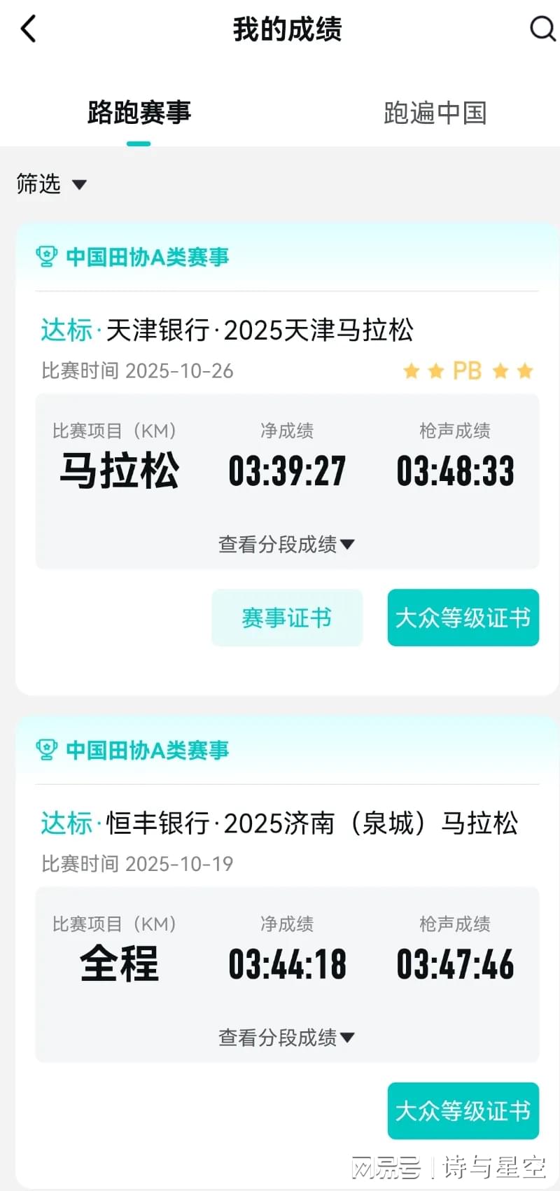 比如,星空君PB的天津马拉松,赛事组织方是中体产业。