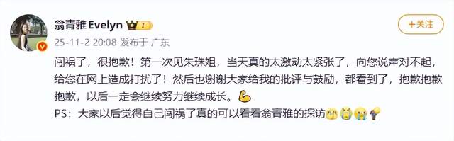 “大家以后觉得自己闯祸了真的可以看看翁青雅的探访。”