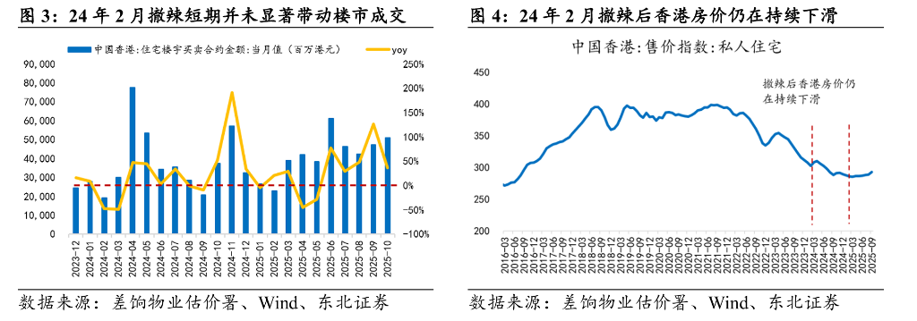 首先是为楼市企稳创造了必要条件的政策转向。2024年2月,香港特区政府宣布全面“撤辣”,即撤销所有住宅物业需求管理措施,包括额外印花税、买家印花税和新住宅印花税。此举大幅降低了交易成本,以一套千万港元的房产为例,交易成本可直接减少150万港元。尽管政策效果并非立竿见影,市场在经过了15个月的消化后,于2025年中期开始显现复苏态势。