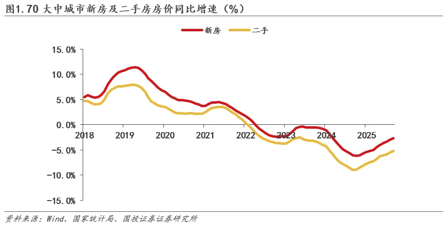 根据国投证券在11月6日发布的报告,2025年二季度以来,一线城市二手房市场正经历价格调整,其中2018-2025年竣工的次新房源价格从第二季度的116872元/㎡调至第三季度的99169元/㎡,单季度调整15.1%。相较之下,一线城市新房价格表现出较强韧性,年初至今跌幅仅为0.6%。