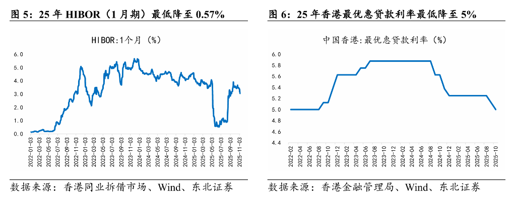 其次,贷款成本的实质性降低,构成了楼市复苏的充分条件。“撤辣”初期,由于香港的贷款利率依然高企,市场并未立即回暖。然而,随着港元汇率走强,香港金管局向市场注入流动性,导致1个月期香港银行同业拆息(HIBOR)从年初的3.98%大幅降至0.57%。由于香港房贷普遍采用与HIBOR挂钩的“H按”计划(通常为HIBOR+1.3%),实际按揭利率一度降至2%左右。同时,美联储的降息也为香港创造了宽松的金融环境。融资成本的下降直接刺激了购房需求,以300万港元贷款为例,当前的月供额较一年前减少了近2000港元。