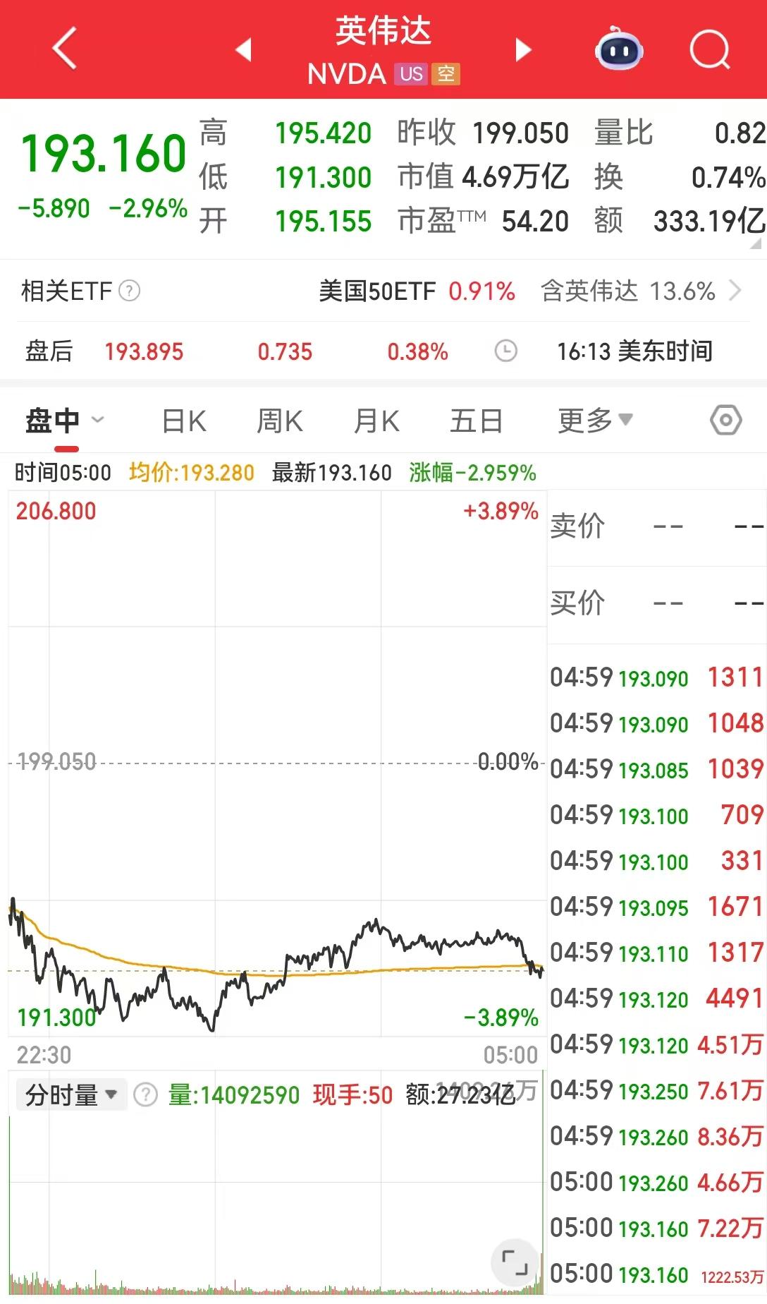 其中,英伟达市值一夜蒸发1431.27亿美元(约合人民币10186.78亿元)。