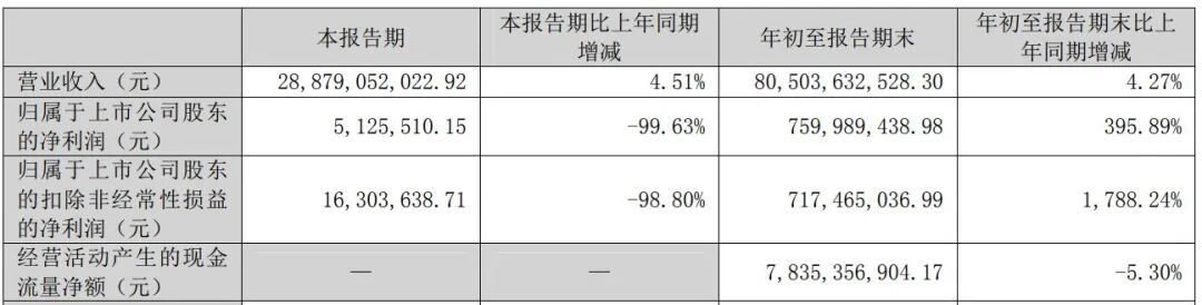 从前三季度业绩来看,新希望累计实现归母净利润7.6亿元,同比增长近400%。其中,第三季度实现归母净利润513万元。