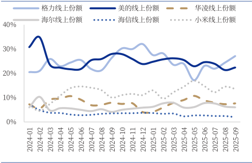 在银河证券的研报中,今年6月,小米与格力在空调市场的线上零售额份额首次交汇,但在后期快速拉开差距,格力仍保持领先。