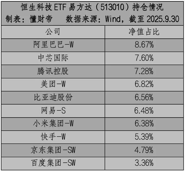 从持仓来看,恒生科技ETF易方达(513010)主要聚焦中国AI应用的领军企业。