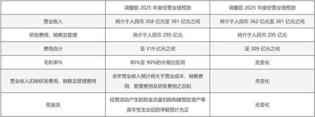 这是新发布的业绩预期公告,预计今年的营收是362亿~381亿,下限提高了4个亿,然后费用从319亿调整为309亿,下降了10个亿。