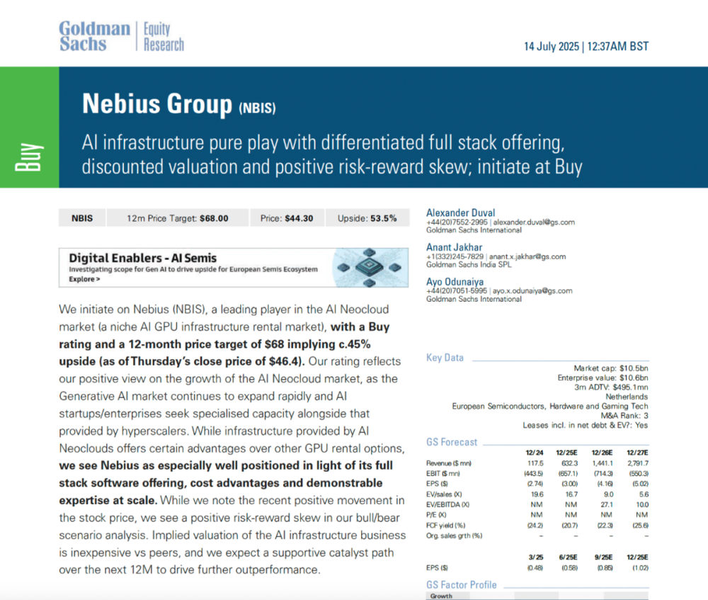 没过多久,石破天惊——Nebius宣布拿下了微软高达190亿美元的大单,直接杀入了CoreWeave的核心地盘,股价当天暴涨50%。